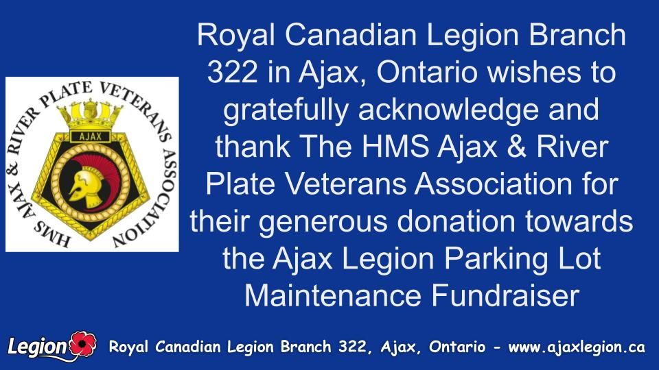 On behalf of Royal Canadian Legion Branch 322 in Ajax — our Veterans, volunteers, and community — thank you for helping restore a vital part of our building.