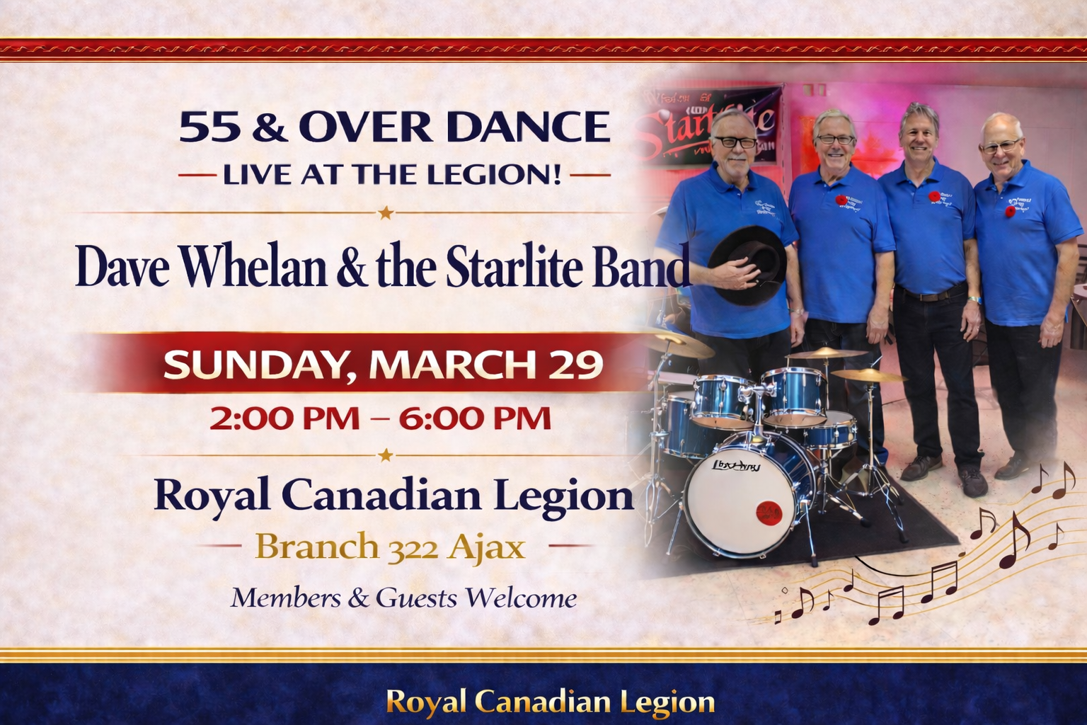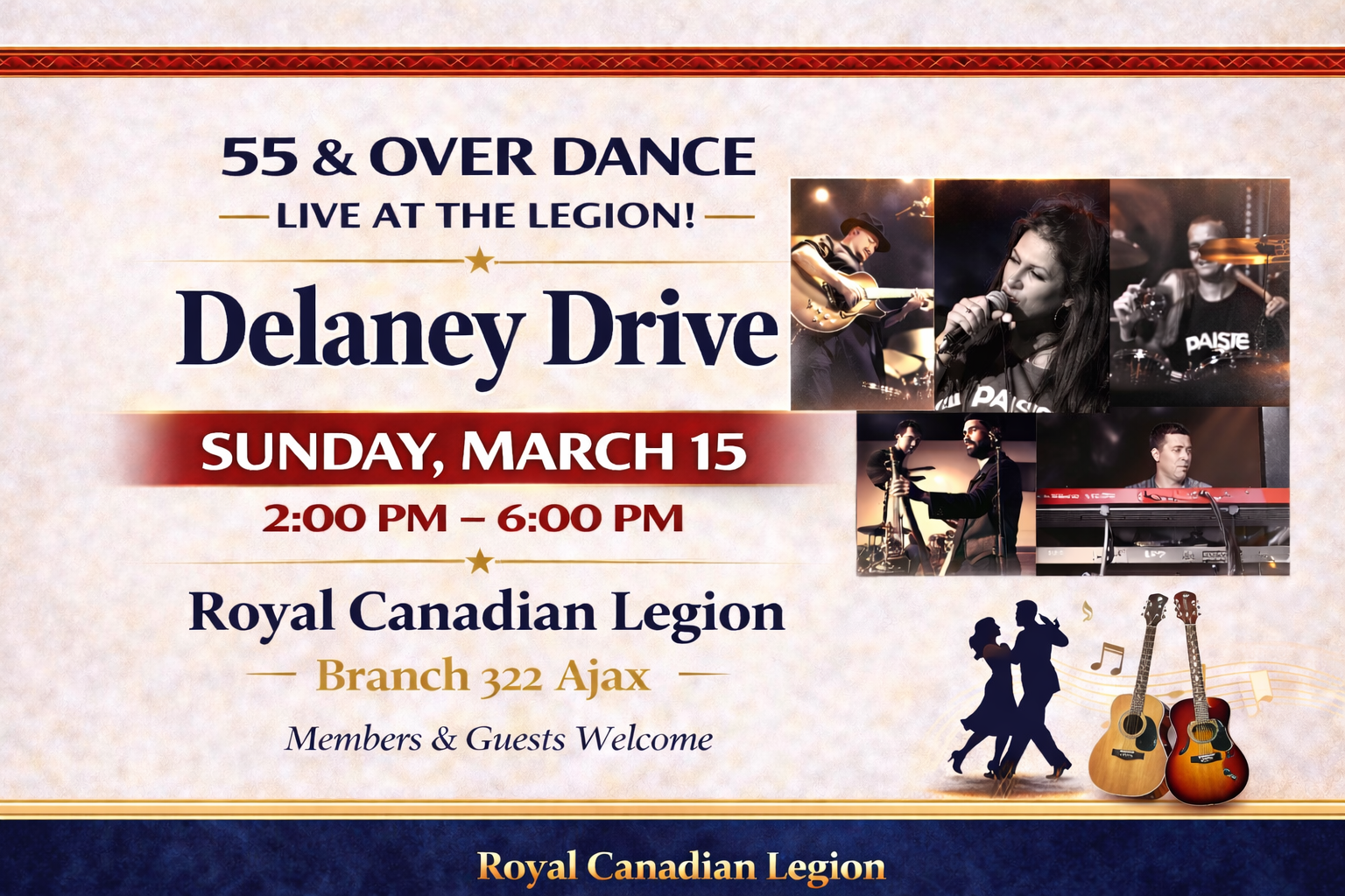 Join us Sundays from 2pm to 6pm for the 55 and Over Dances featuring Live Entertainment in the Clubhouse Lounge.