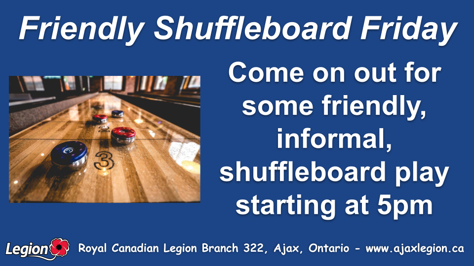What’s Going On This Week at Royal Canadian Legion Branch 322, Ajax, Ontario